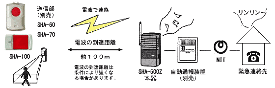 - 別売りの通報装置と組み合わせて、携帯電話などへ通報可能