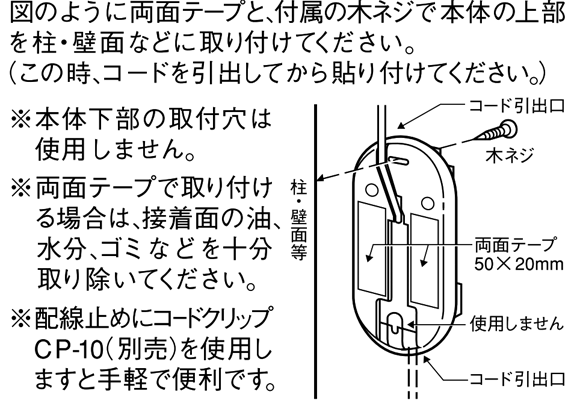 | 付属品 | 結線済コード10m、にぎり押しボタン1個 両面テープ2枚 木ネジ1本 |