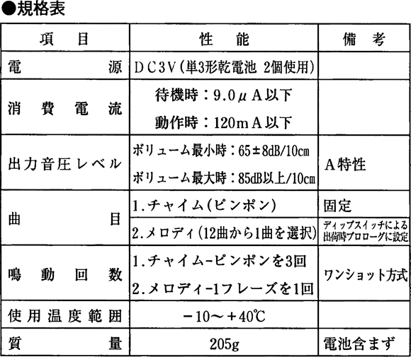 | サイズ | チャイム 145(H)×85(W)×34(D)mm | |