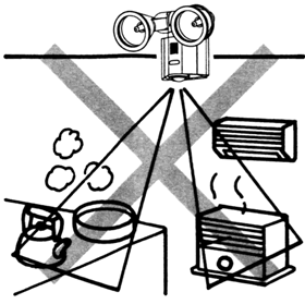 冷暖房器、水、湯気、油、すきま風が近くにある |
