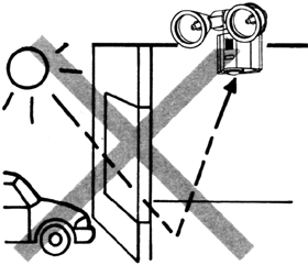 検知エリア内に障害物がある。(植木、ガラス、塀など) ガラス越しには検知しません・ |