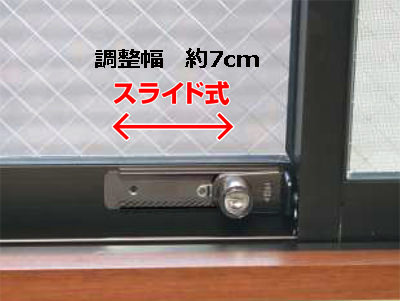 窓・ぼ一犯錠のロック本体を0~70ミリの範囲でスライドできます。換気する位置で施錠します。
