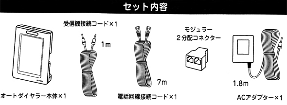 | セット内容 | 本体1台 モジュラープラグコード7m X 1本 2分配コネクター X 1個 |