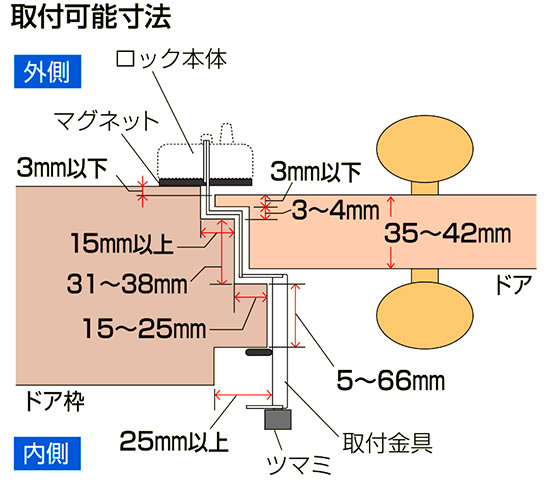- ※取付可能なドア、ドア枠のサイズをこのページの下に明記してます↓