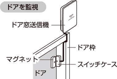 窓、ドア、引き戸が開くと、離れた場所の受信器でお知らせします。